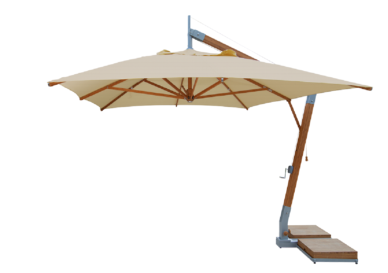 The Bambrella Side Wind portfolio presents premium cantilever parasols engineered for strength, durability, and modern style. This model includes a 360° rotating base and 45° tilt for adaptable shading, adjustable feet for uneven ground, and specialised polymer bearings that never seize or rust. Its refined bamboo aesthetic suits both residential and commercial spaces, and optional ground-base installation allows added flexibility. When combined with custom branding, it becomes a standout feature for attracting attention. The Bambrella Levante Side Wind further expands coverage with its elegant bamboo frame and stainless-steel fittings, offering exceptional wind resistance and long-lasting performance—perfect for enhancing any outdoor environment.