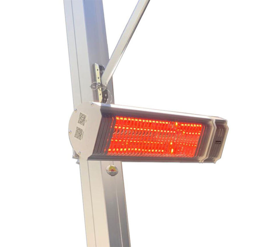 The Golden 2000 Electric Parasol Heater is a stylish and premium parasol mounted heater with a clean and modern design, using infrared short waves.