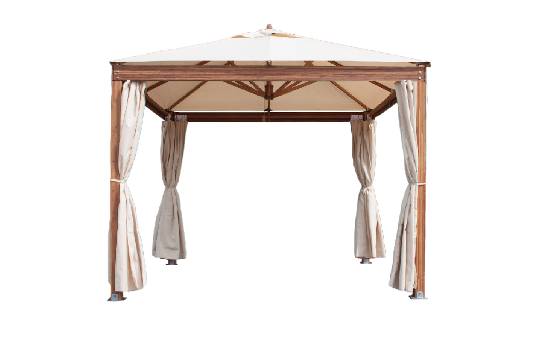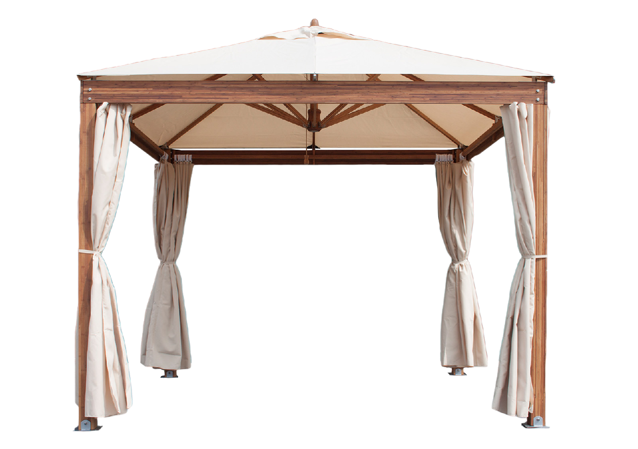 The Bambrella Alize bamboo parasol is designed as a premium luxury pavilion, creating an inviting space for both entertaining and relaxation. Its contemporary bamboo framework provides exceptional strength, making it ideal for use as either a permanent or temporary outdoor structure. For added privacy and comfort, the drapes can be closed on all four sides. The base feet can be securely anchored to any surface using bolts, screws, or pegs, or paired with weighted or concrete-filled bamboo bases. As with all Bambrella® products, the Alize is crafted for both commercial and domestic settings, offering long-lasting durability, ecological responsibility, and a timeless sense of style. A perfect choice for elevating the atmosphere of any outdoor environment.
